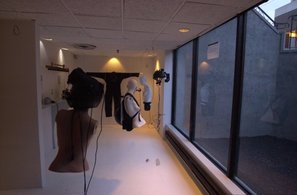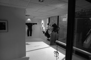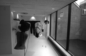 Modern cement and steel contstruction facilitates large open spaces not possible with wood beam construction. Movable walls are made possible by the large span of steel beams and trusses. (Example: Simon Penny and Bill Vorn exhibit, May+June 2003)