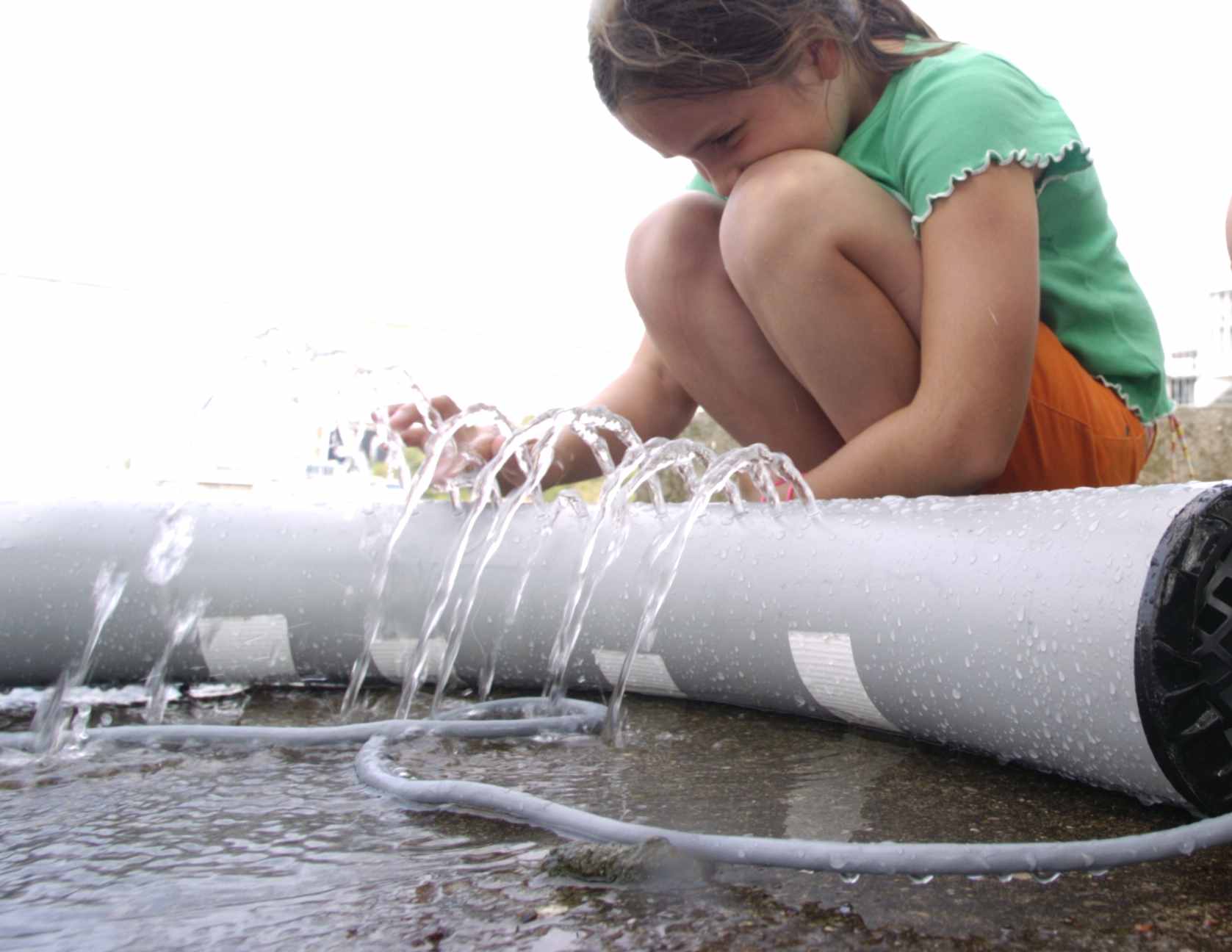 with a flute, the sculpture is played by blocking water jets.