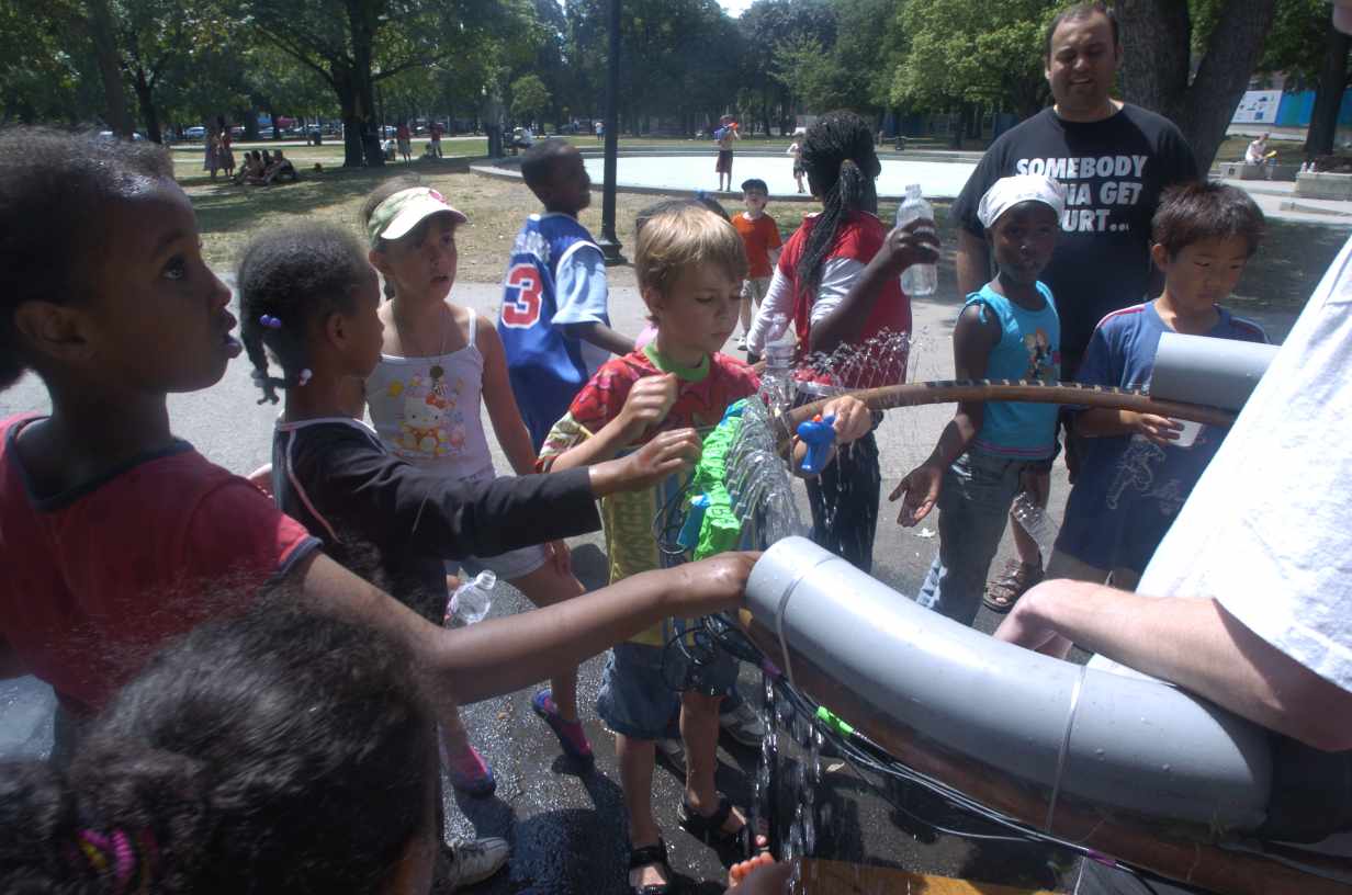 The entire sculpture is to be run off renewable energy (solar both for photovoltaics as well as heating of the water to make the sculpture more comfortable to play and more ``FROLICious'', as well as a Lakota 12 volt wind turbine). This emphasis on renewable energy also provides further safety of materials (electrical circuits, etc.) by way of an entirely ``off-grid'' installation. I have also designed, built, and tested prototypes of the waterplay sculptures with renewable energy, by creating an urban ``teach beach'' research facility at the 330 Dundas Street studio. The design choices have been a proven success (winning entry, first prize, in the International CORAM Sustainable Design Competition in 2004 for a similar kind of waterplay sculpture run on renewable energy; see http://eyetap.org), so we are ready to move from the research prototype to a nicely finished well-crafted version of the sculpture.