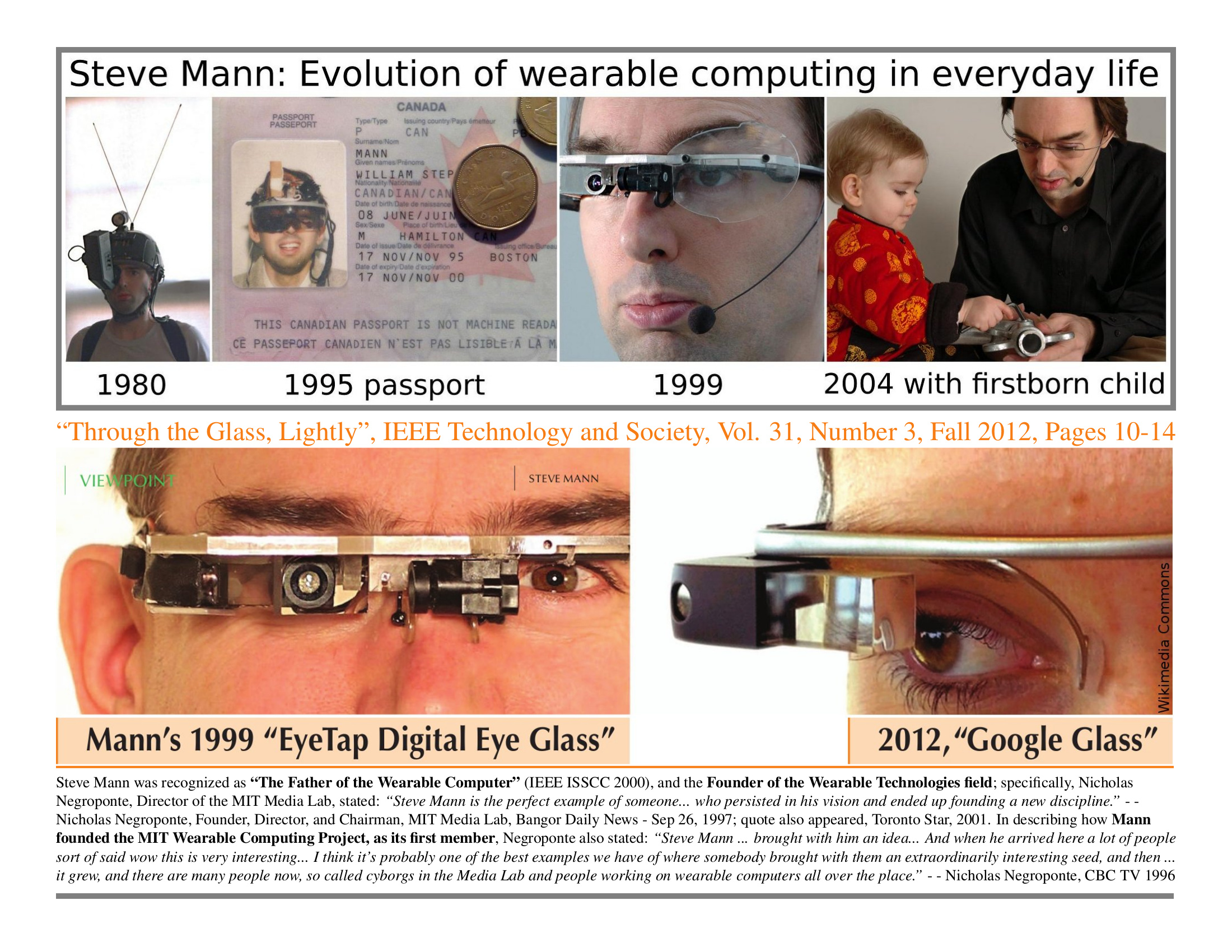 Steve Mann was recognized as "The Father of The Wearable Computer"