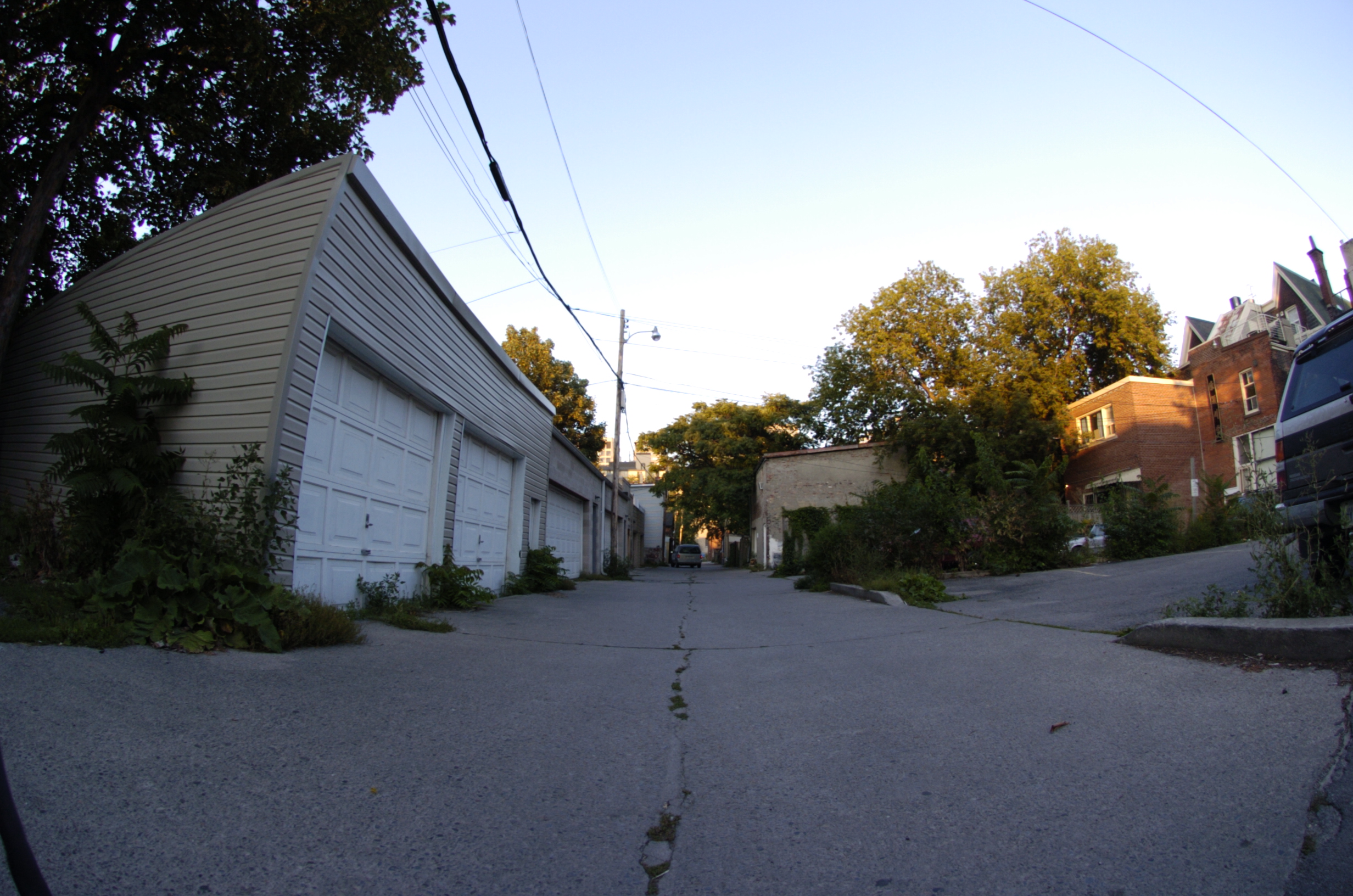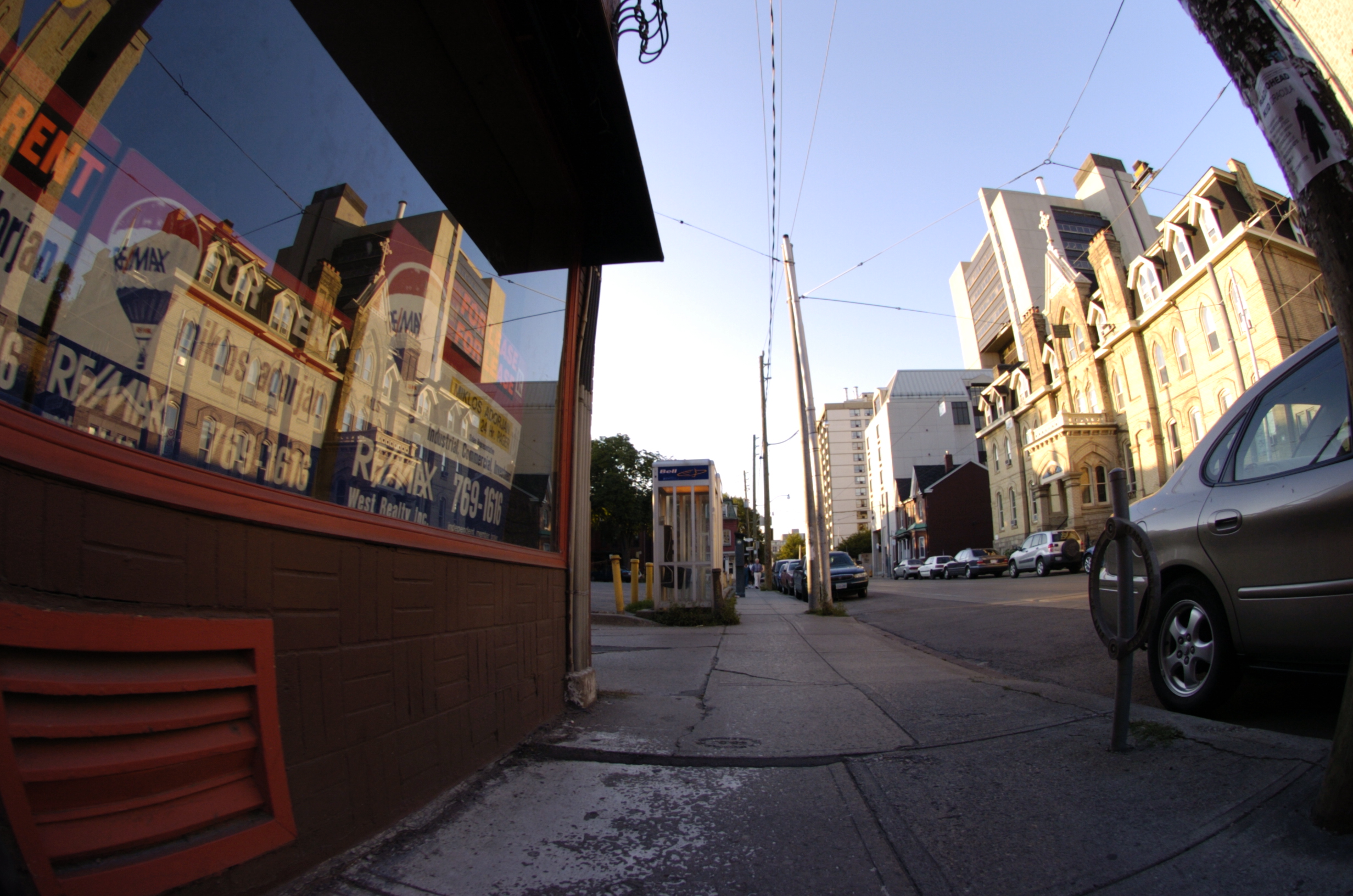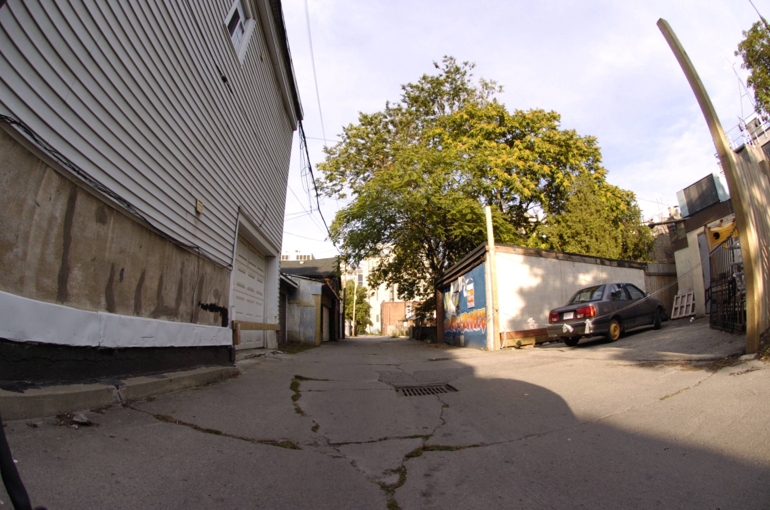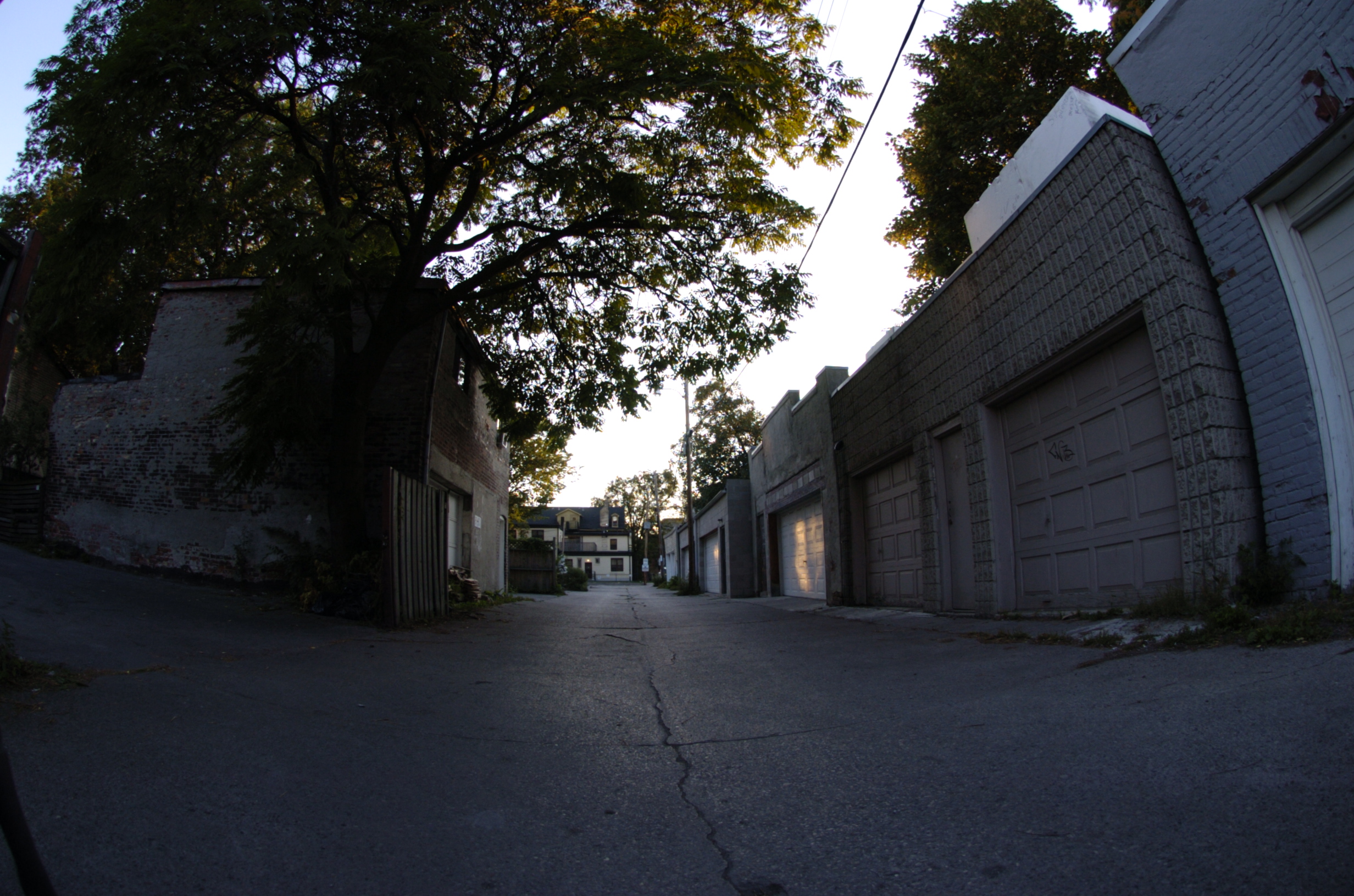 A fisheye lens provides a 180 degree field of view of subject matter