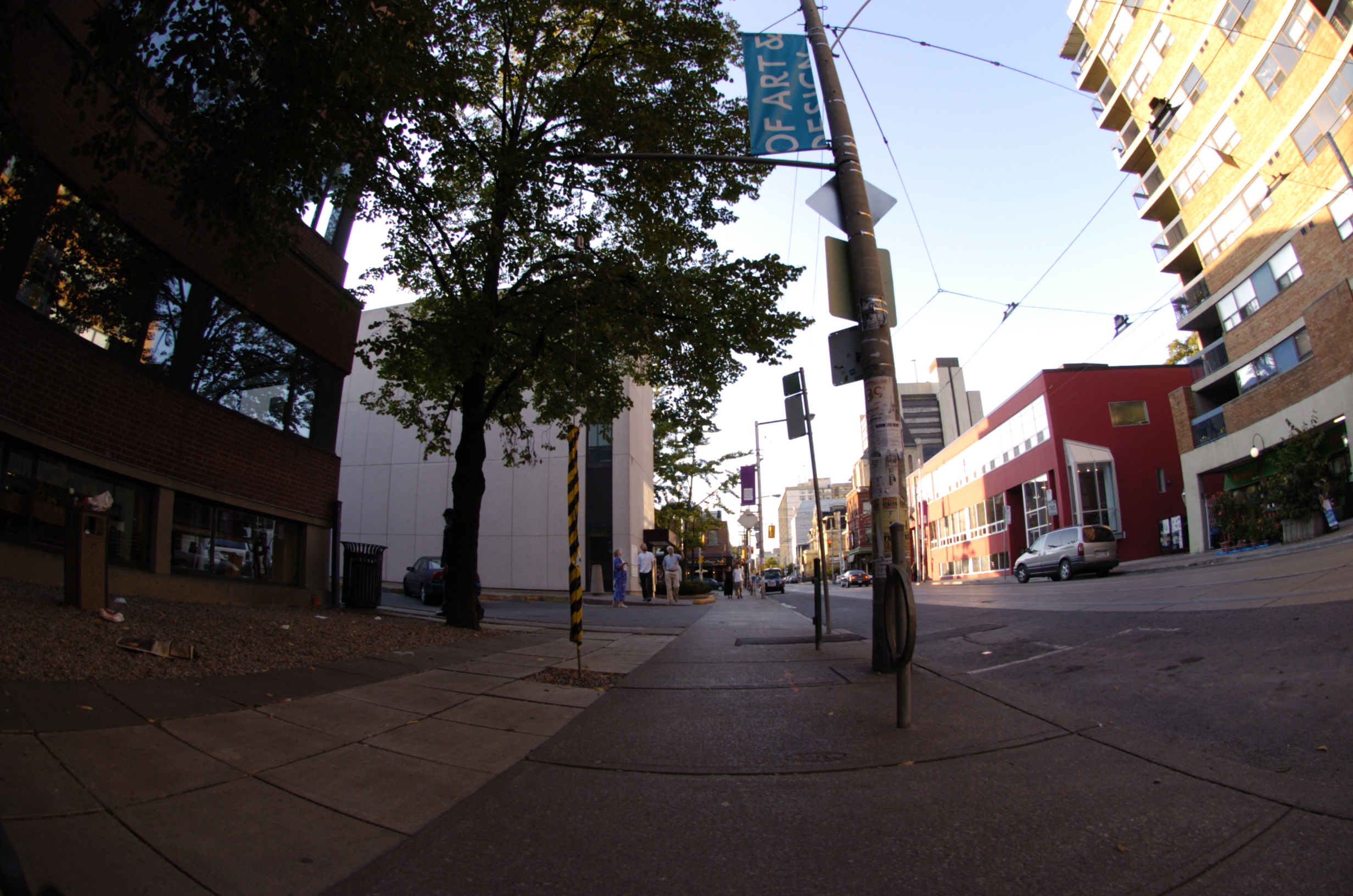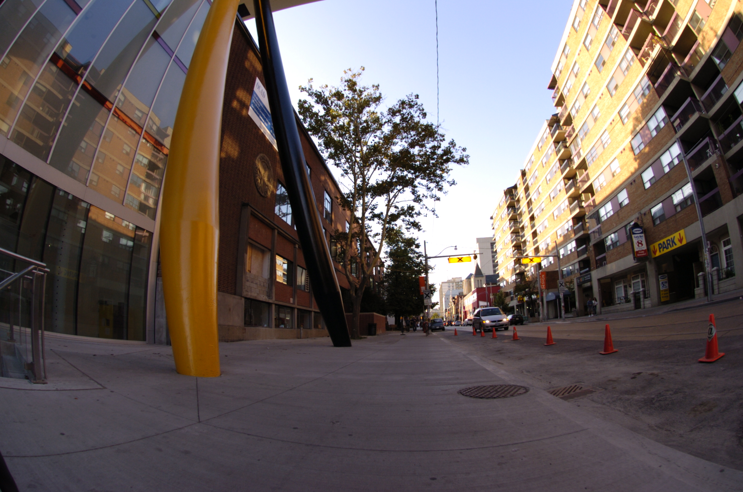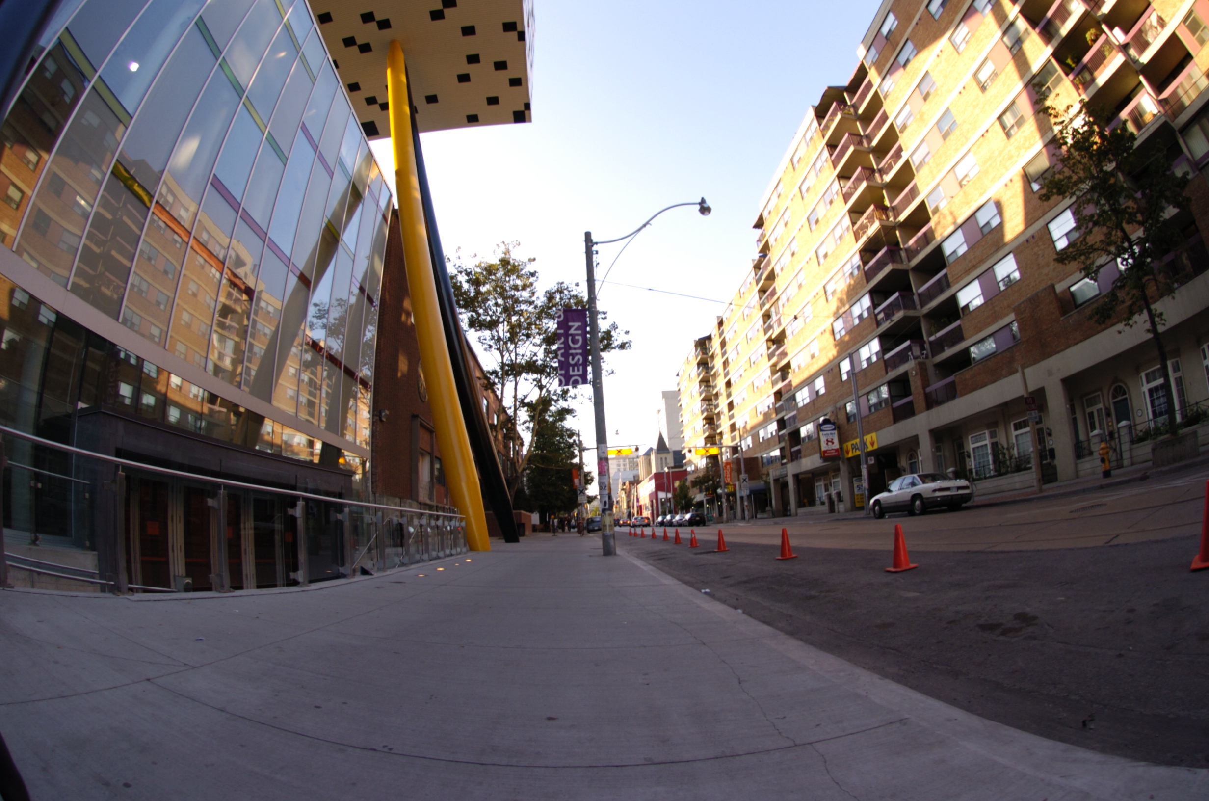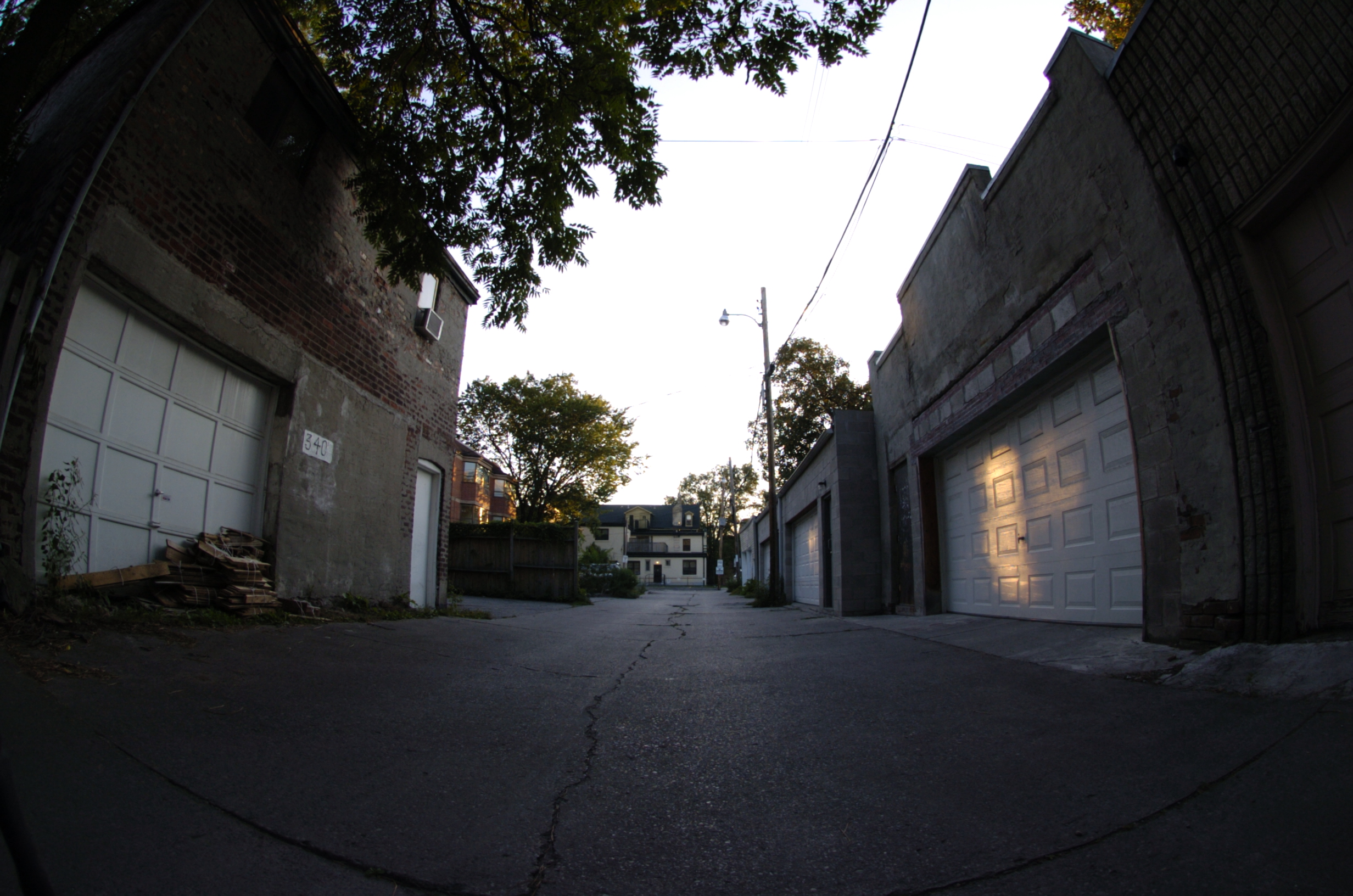 A fisheye lens provides a 180 degree field of view of subject matter