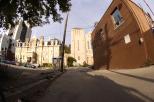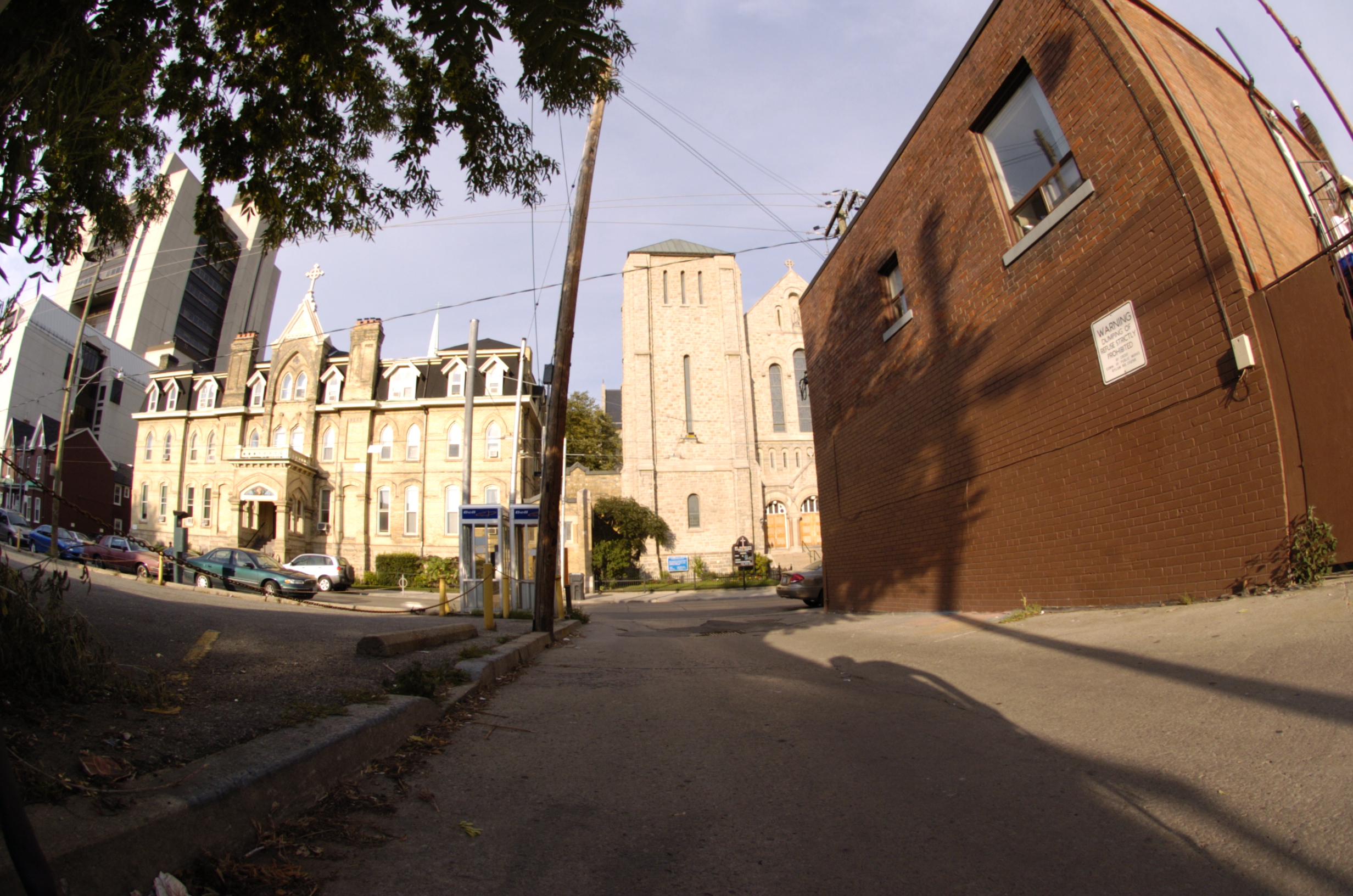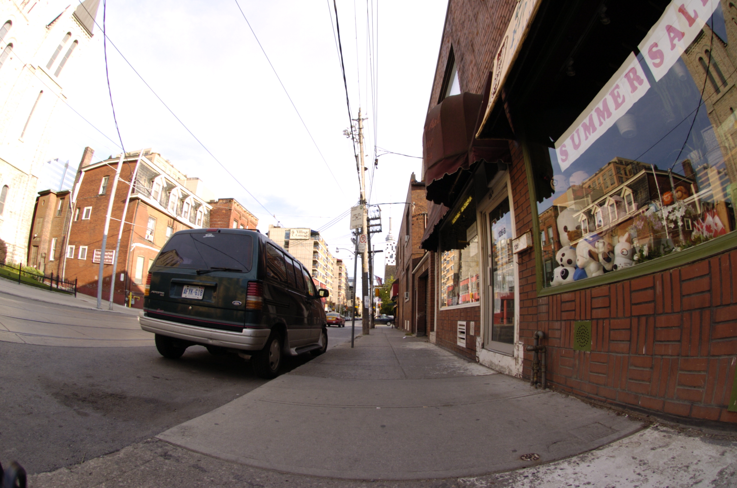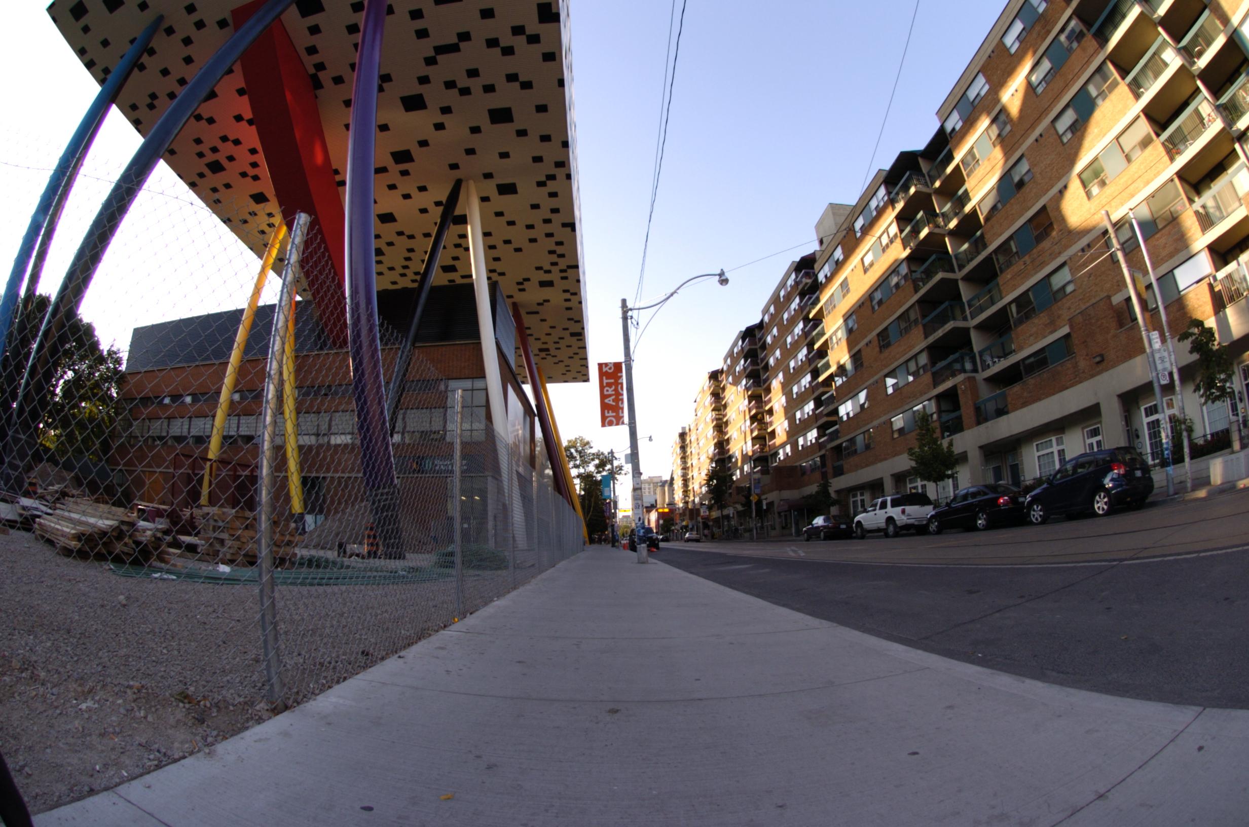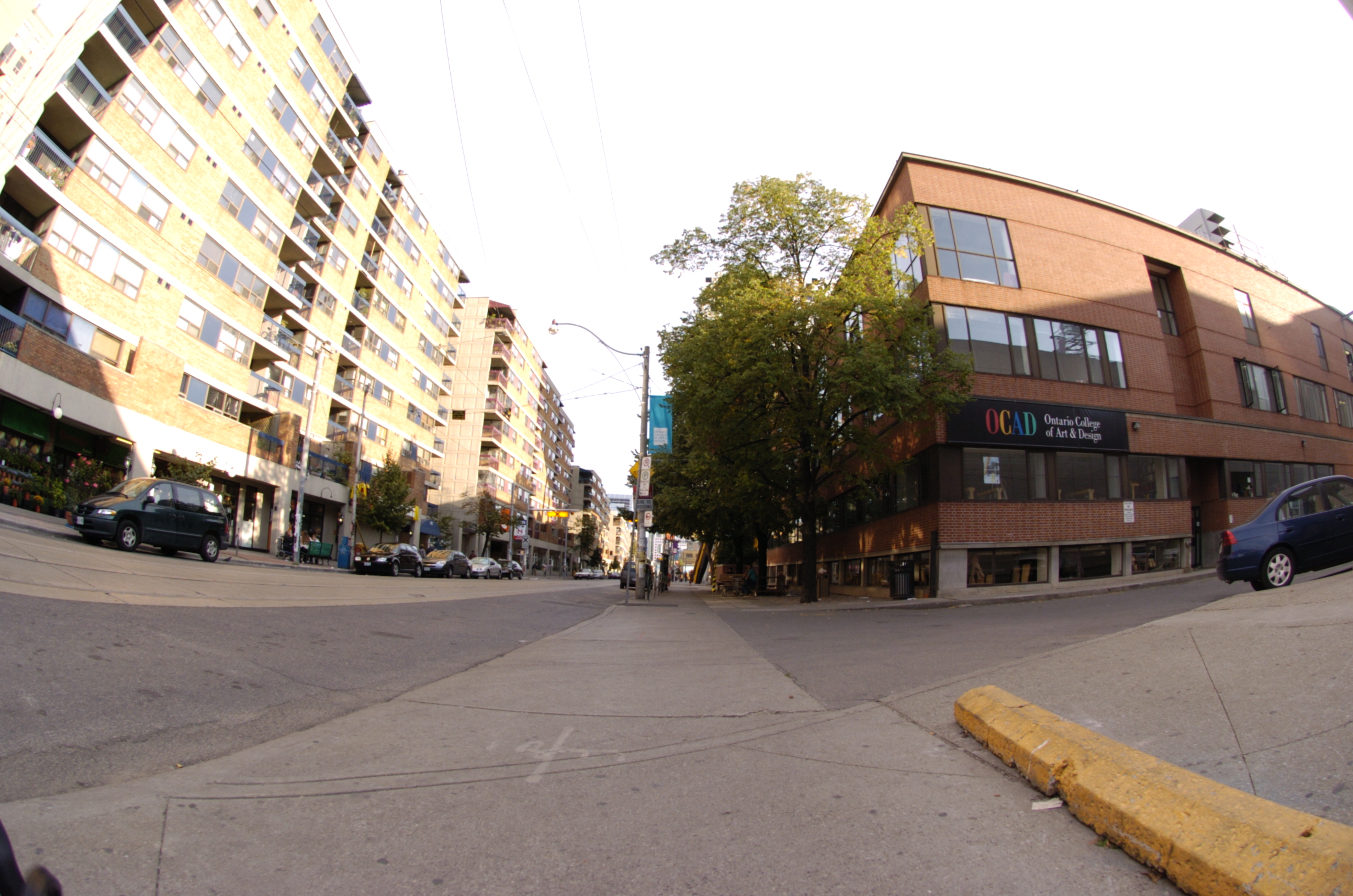 A fisheye lens provides a 180 degree field of view of subject matter