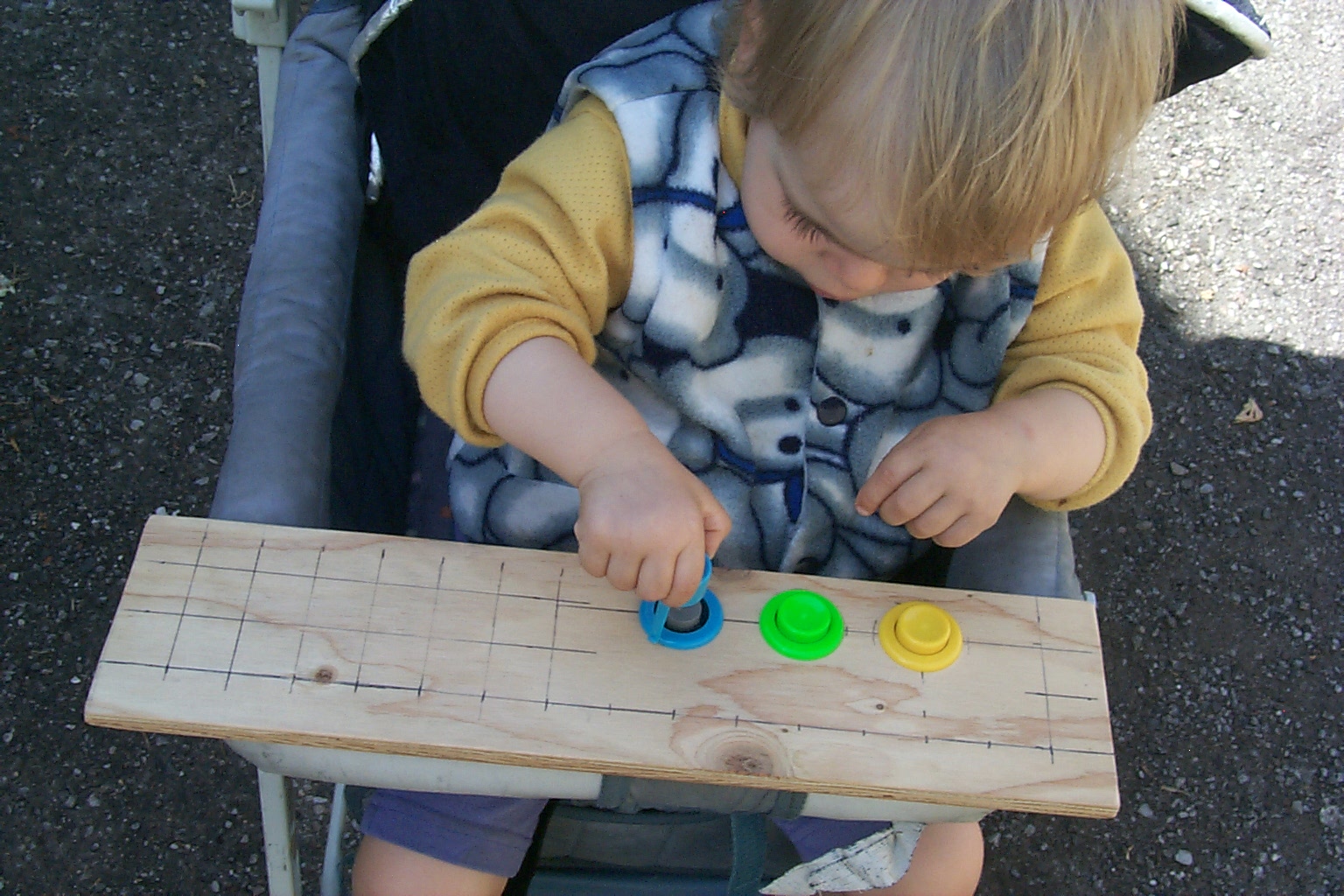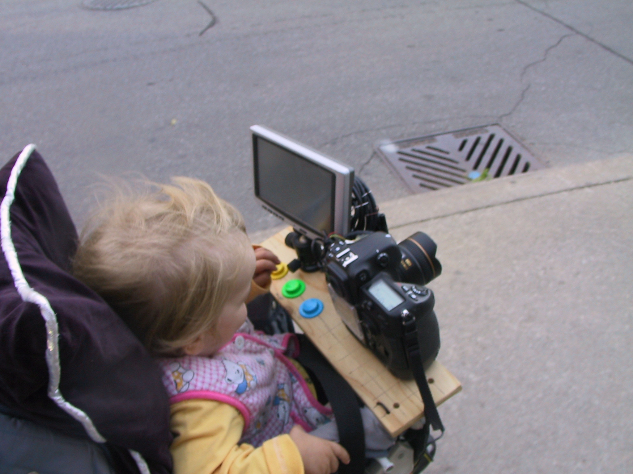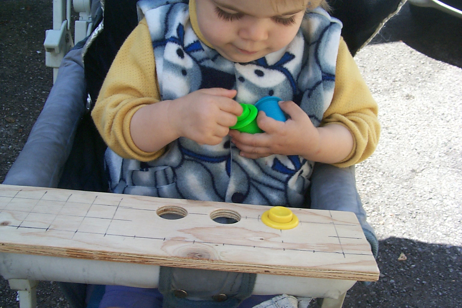 while seated in the stroller, as shown below: