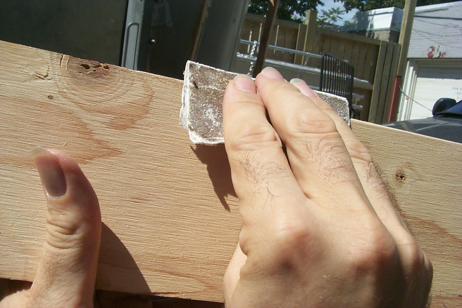 the sharp corners; Christina is eager to do some of the sanding