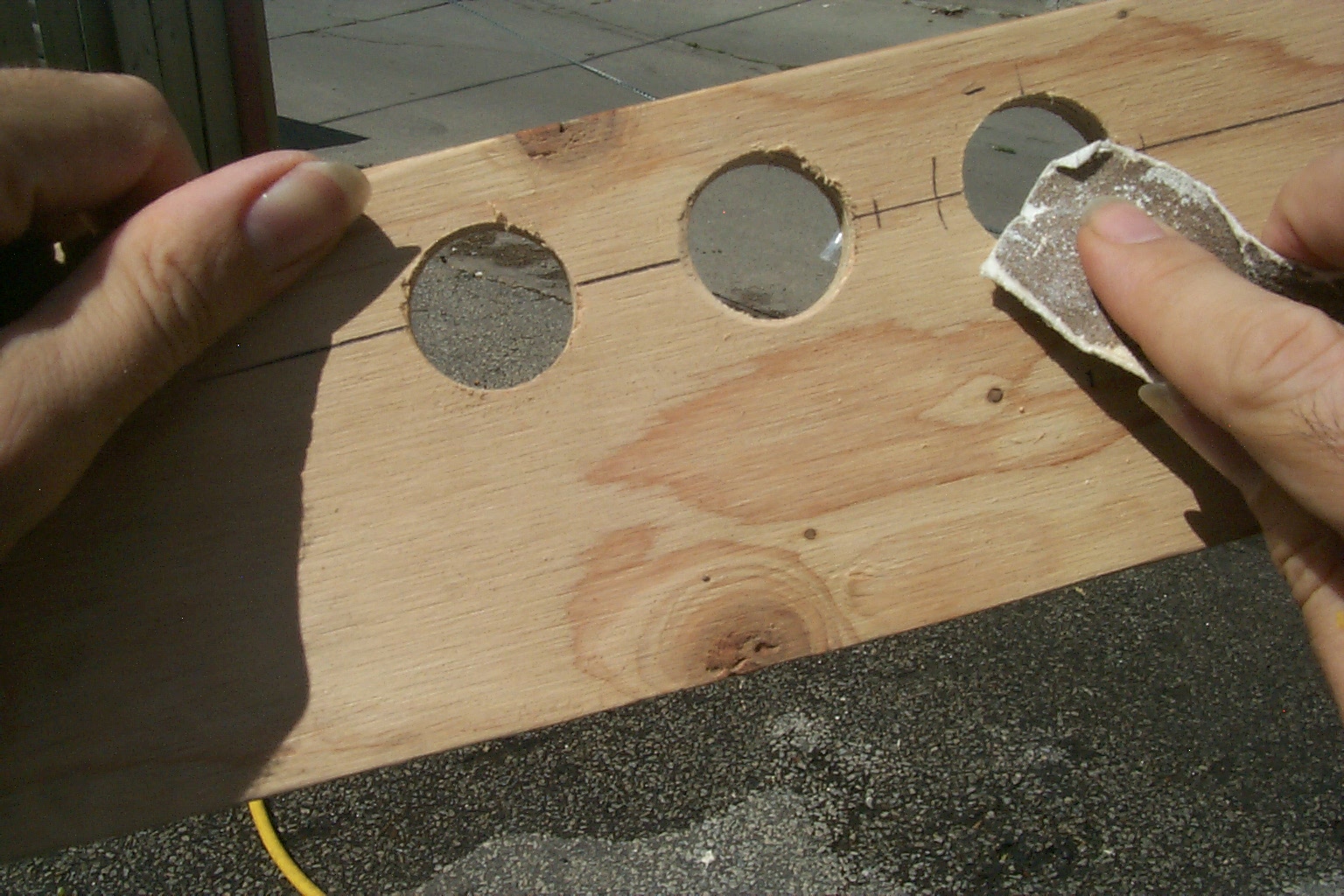 ...so, finding a piece of wood to mount them in... sanding off