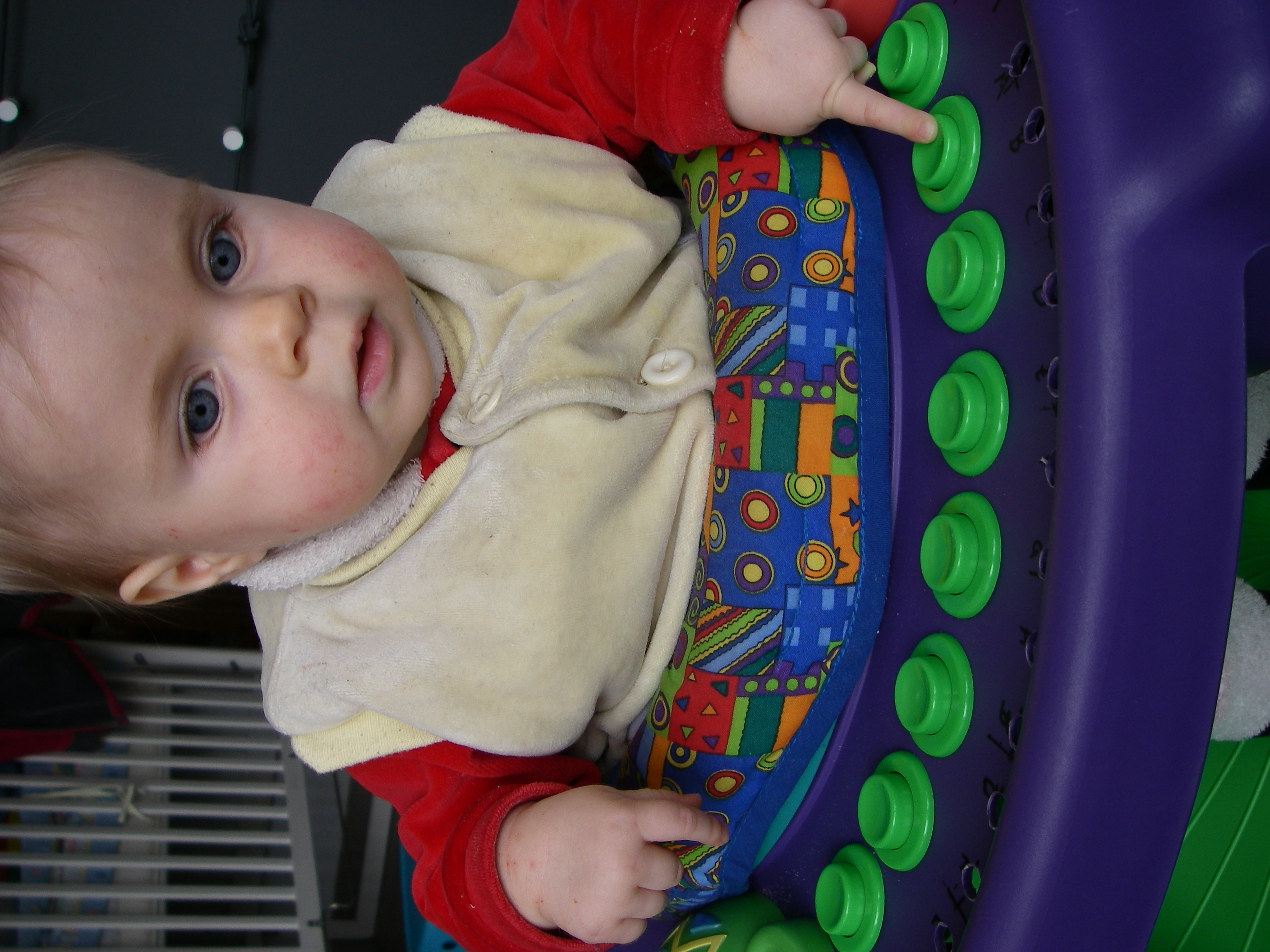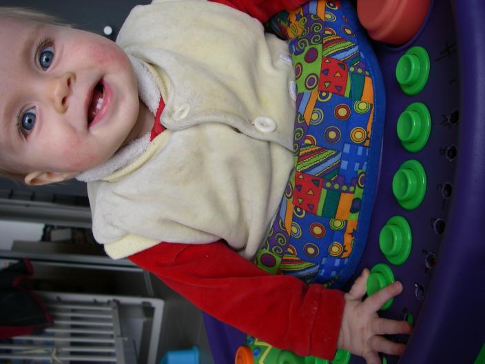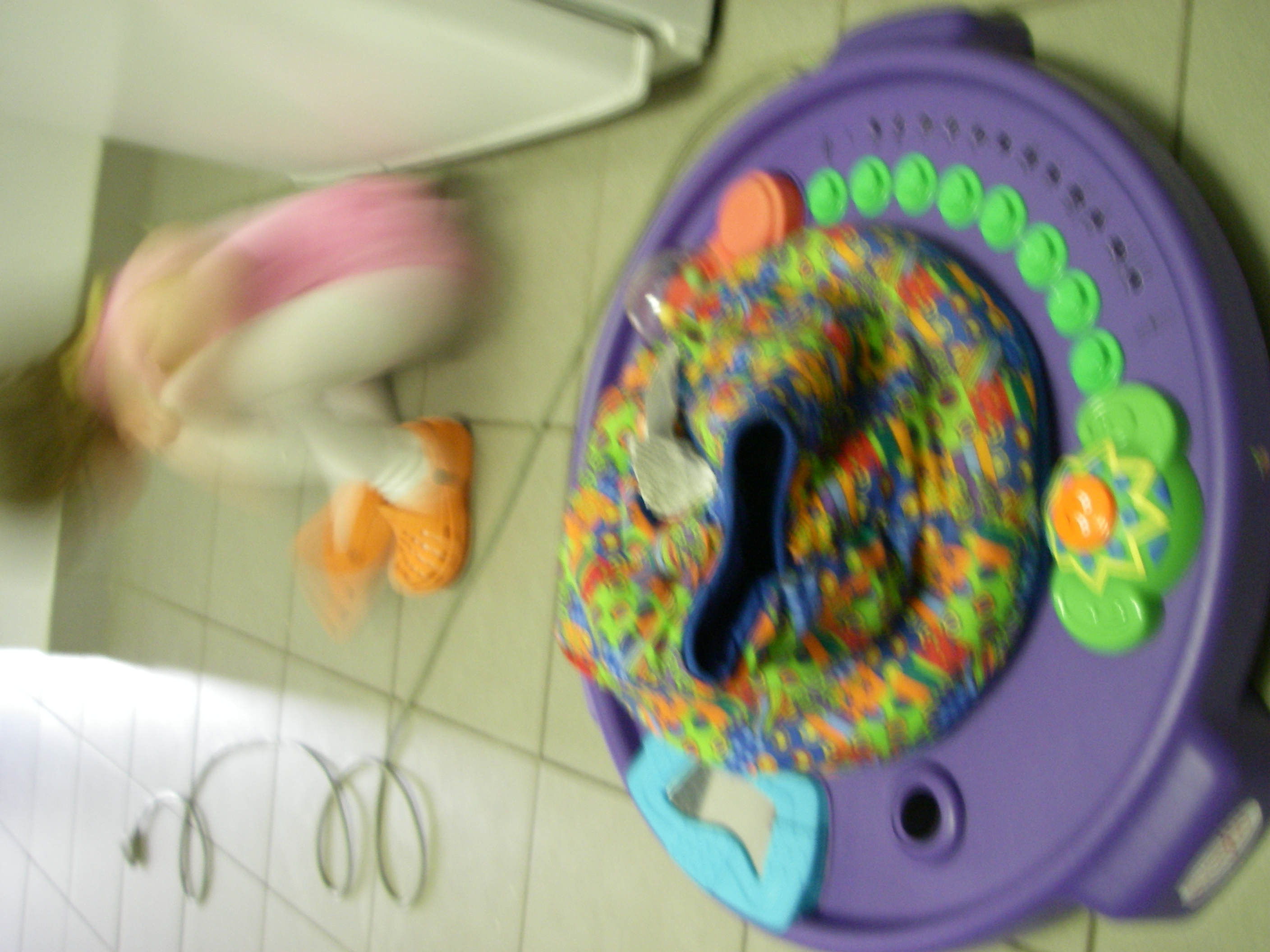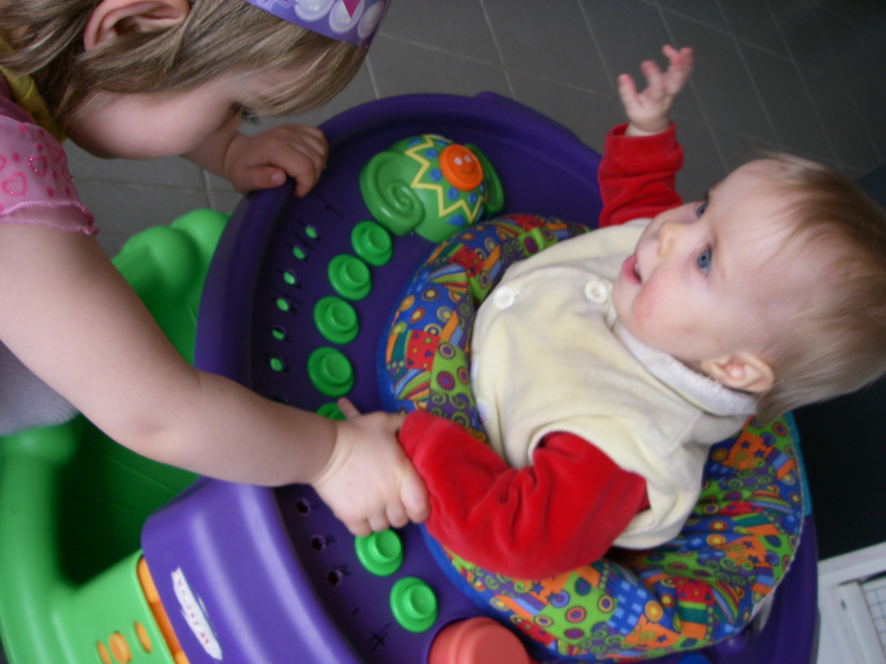 movie of christina playing ascending natural scale with stephanessie in exersaucer