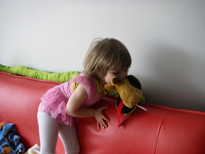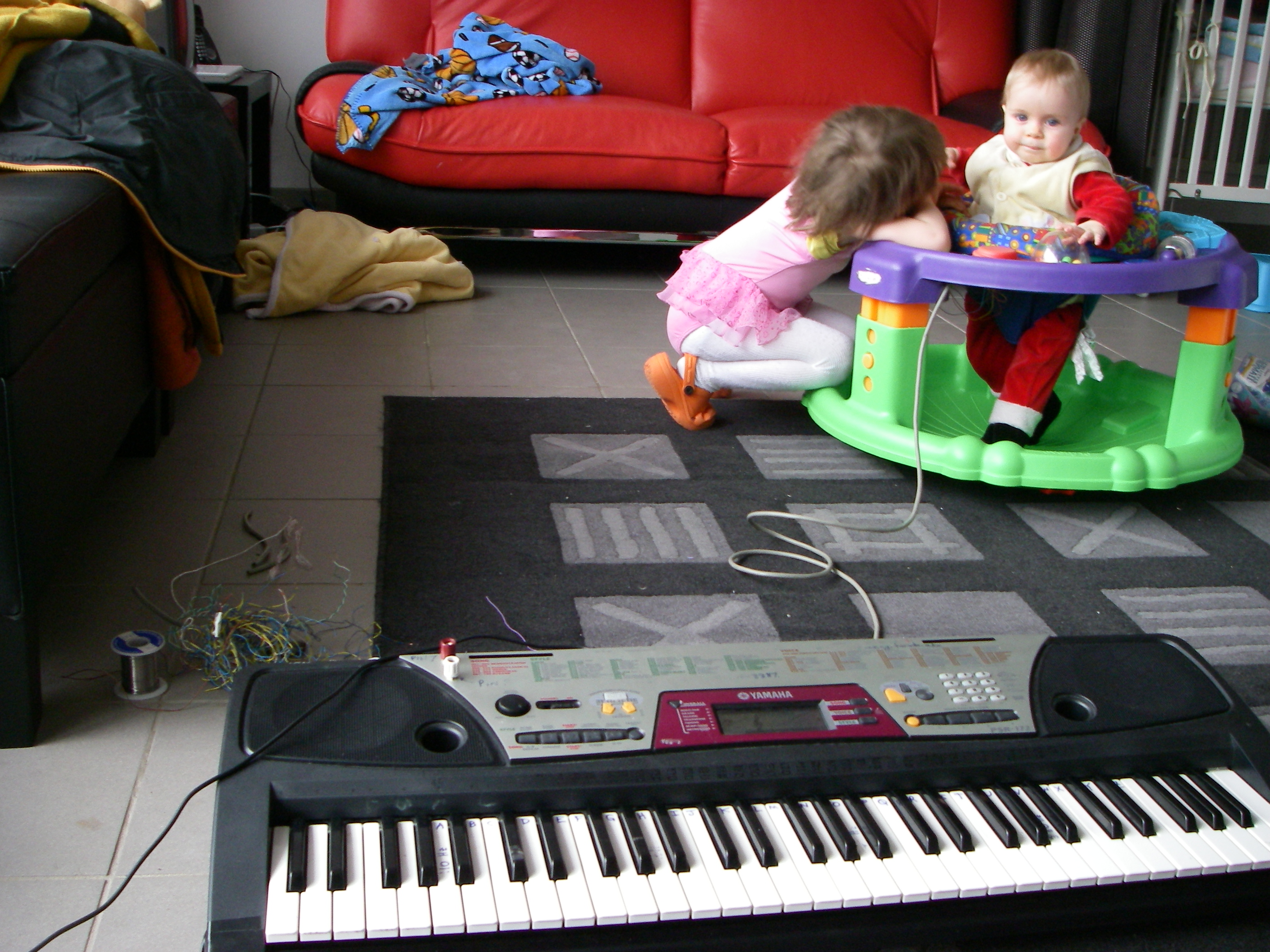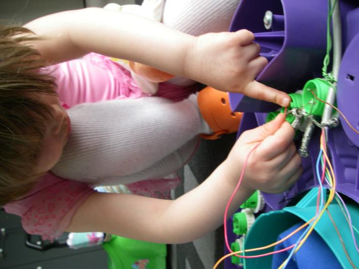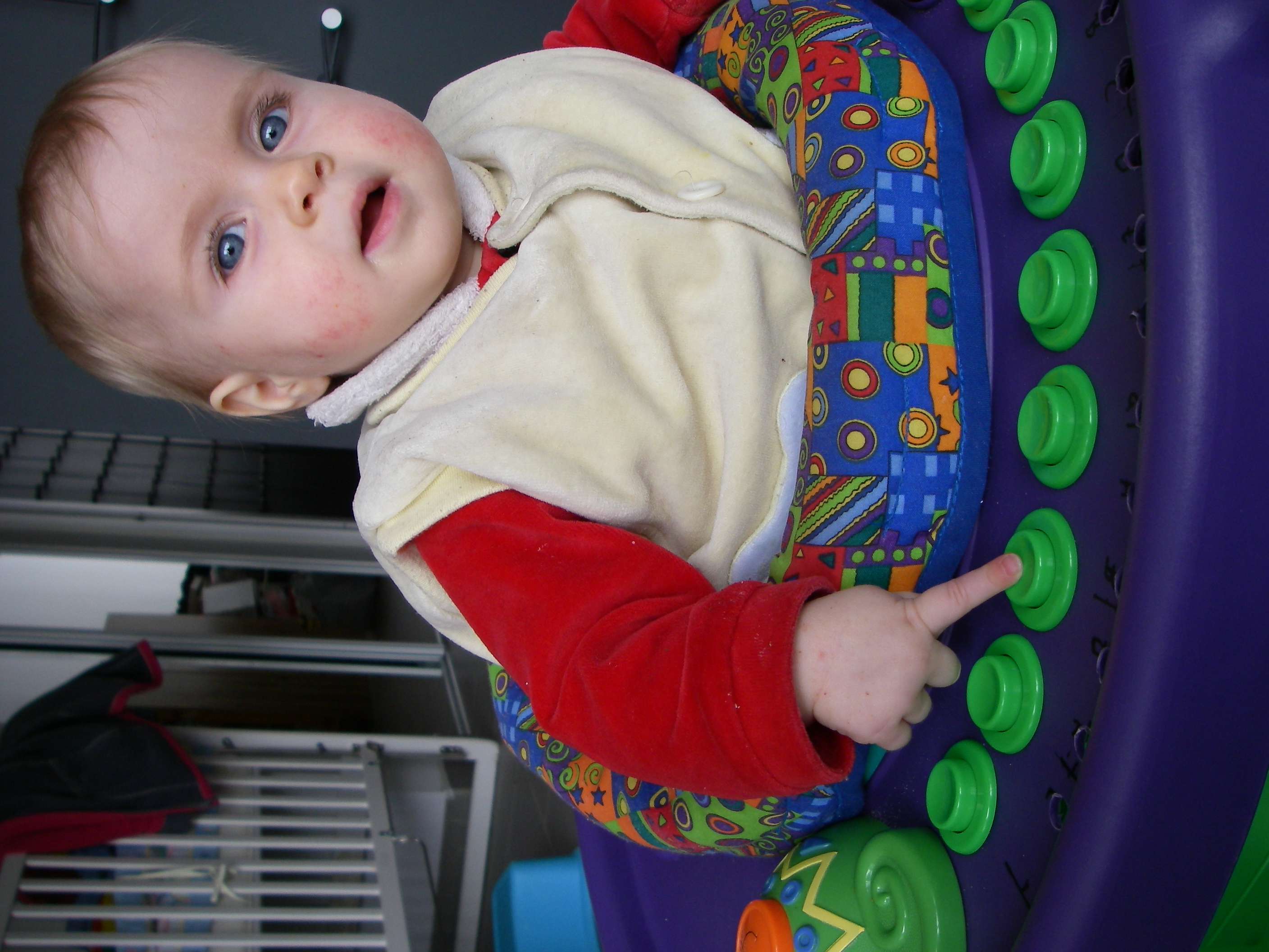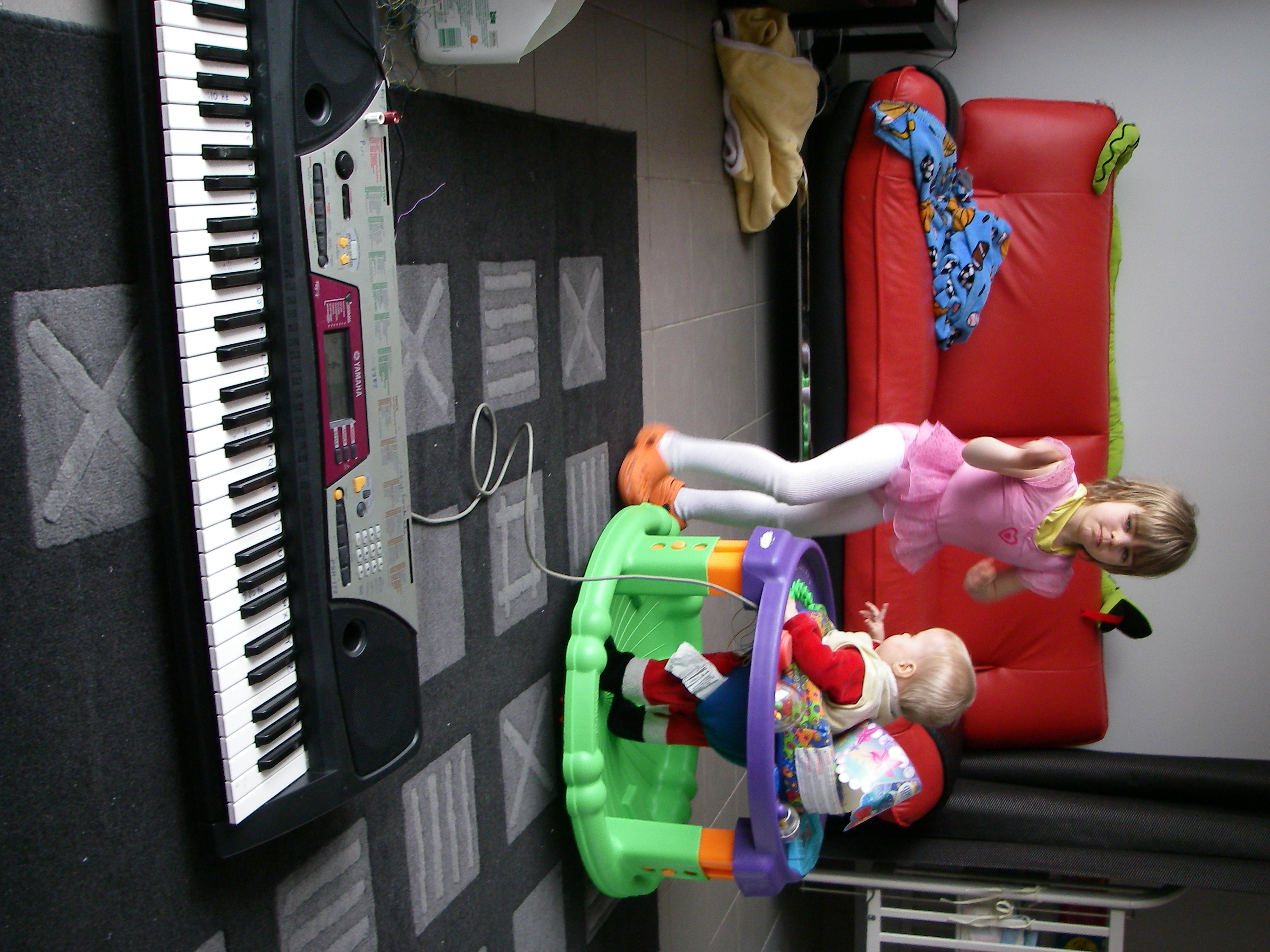 movie of christina playing ascending natural scale with stephanessie in exersaucer