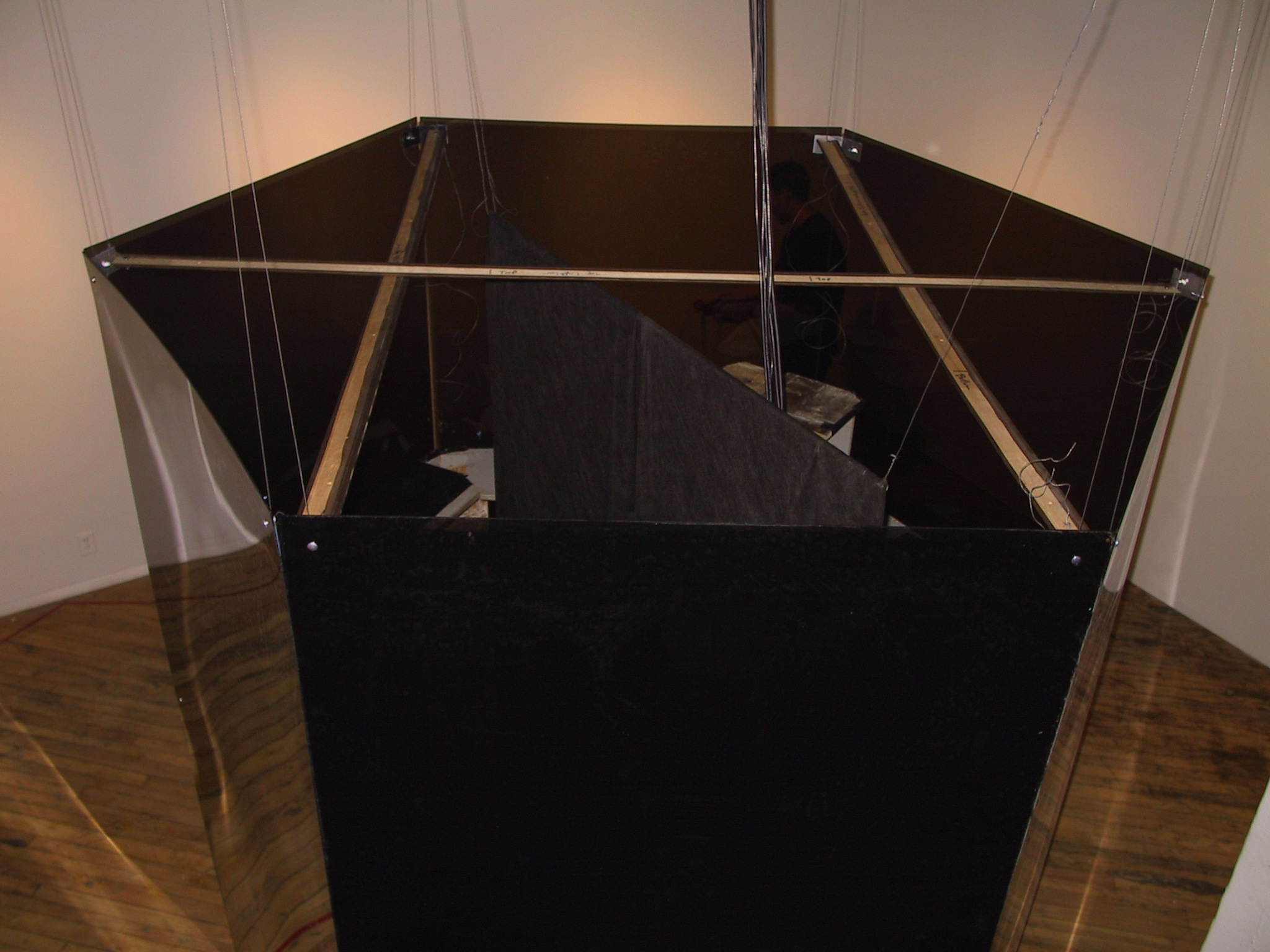 darkly tinted bulletproof glass, or darkly smoked lexan (polycarbonate)