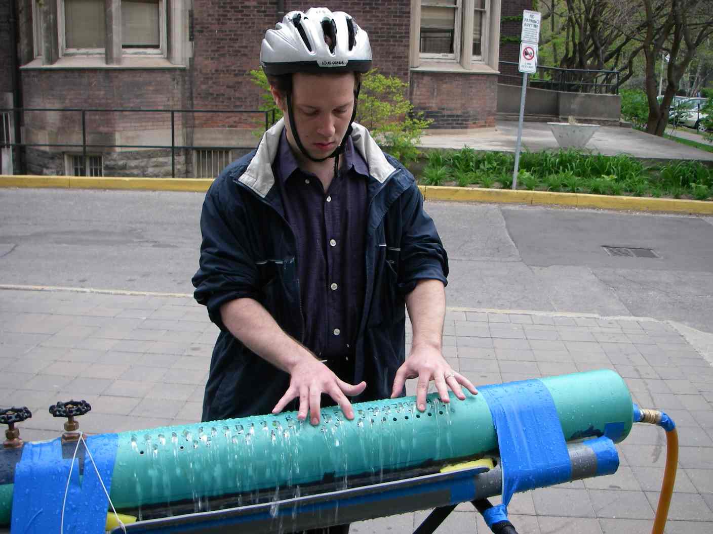 Thursday afternoon, 2006 May 4th, showing the Hydraulophone to Gage Averill and others at the Faculty of Music